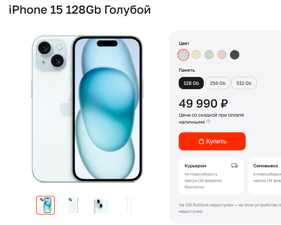А цены! iPhone 15 на 256 гигов сейчас стоит около 59 тысяч. За эти деньги можно взять что-то посвежее и функциональнее. Низкая цена радует ровно до момента, когда понимаешь, что купил вчерашний день.