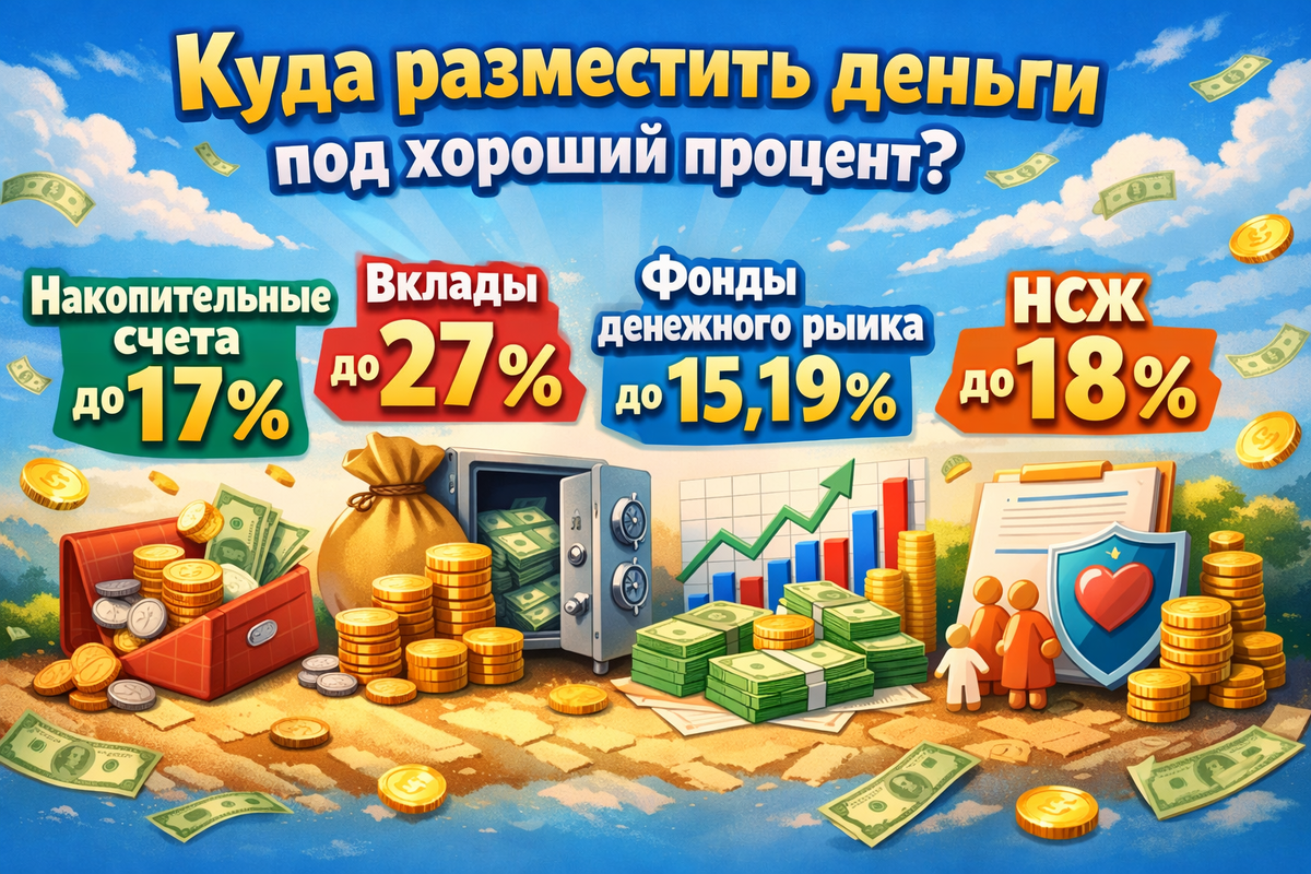 🏦 Если у вас на счетах лежат свои и/или кредитные деньги, их можно разместить на вкладе, накопительном счету (НС) под повышенный процент, в фонде денежного рынка и в накопительном страховании жизни (НСЖ), чтобы получить максимум дохода.