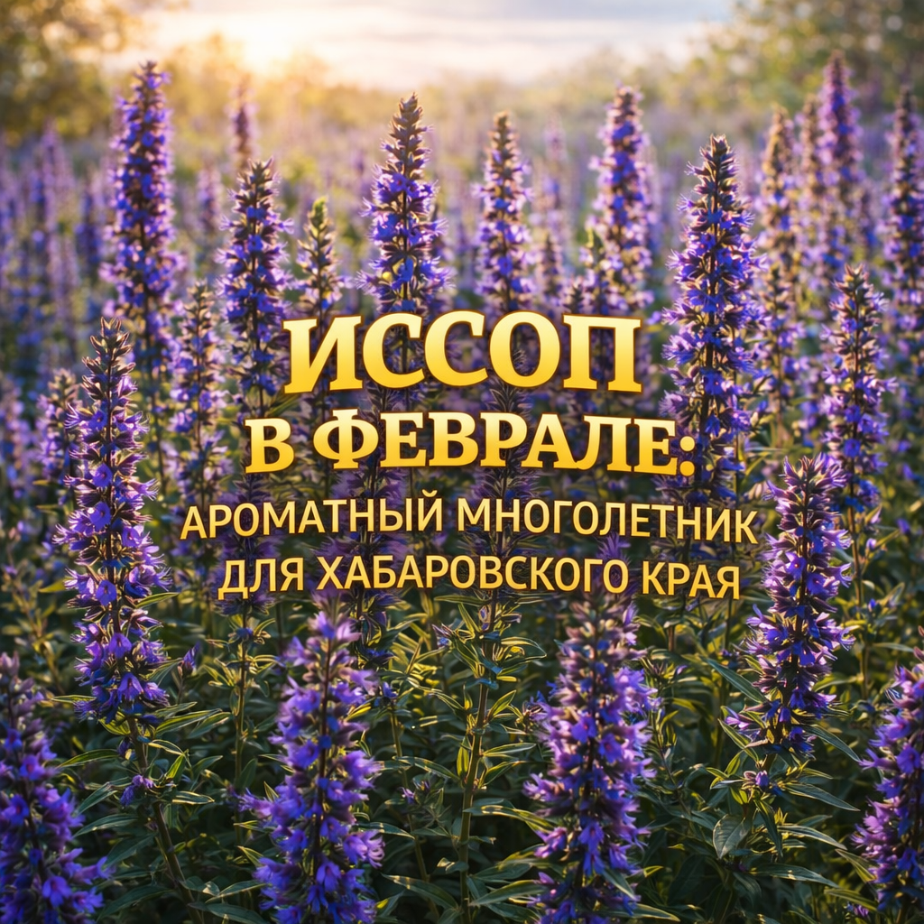 Температура проращивания — около 20–22°C. Всходы появляются через 10–14 дней. Свет нужен яркий, особенно в феврале, когда день короткий. Без досветки рассада может вытягиваться. После появления всходов температуру желательно немного снизить до 18–20°C. Полив умеренный, без переливов — иссоп не любит избыточной влаги.