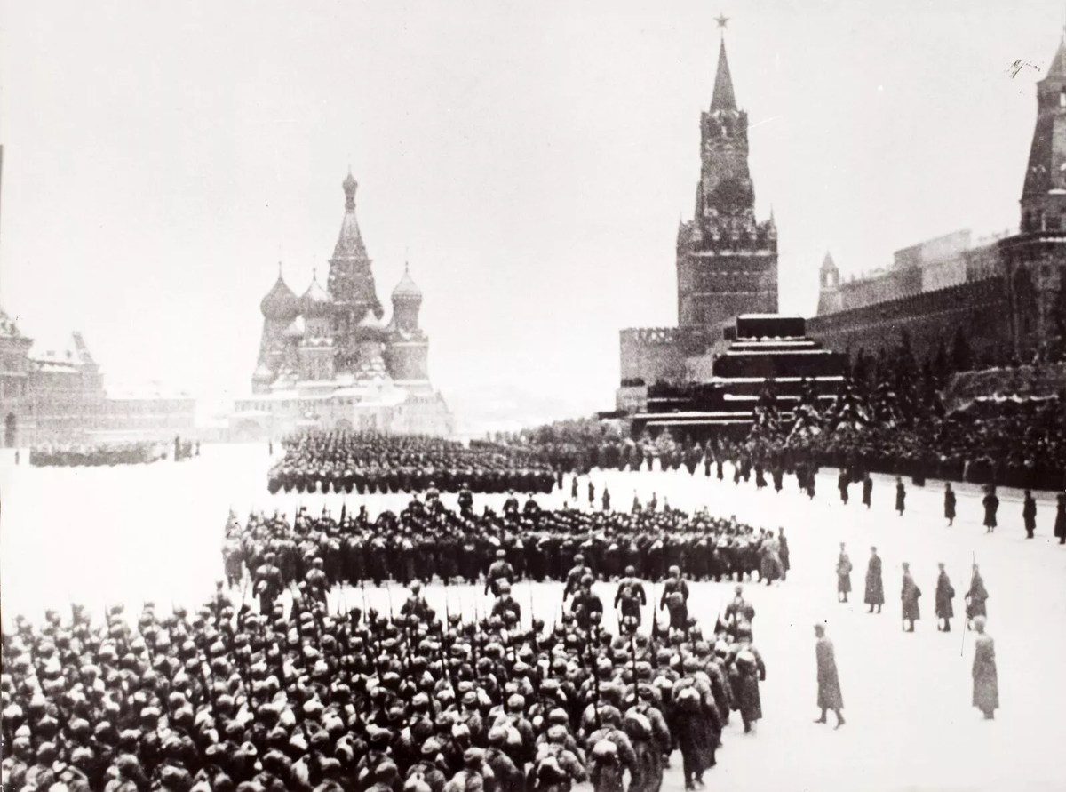 7 ноября. По плану парад должен начаться в 10:00, но из‑за угрозы авианалёта его переносят на 8:00.