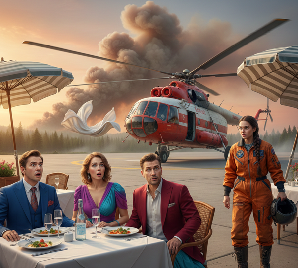 Но пить никто не стал. В бокалах плавал пепел, который принесло ветром от винтов. Пепел настоящей работы, который осел на их идеальной, но такой пластмассовой жизни.