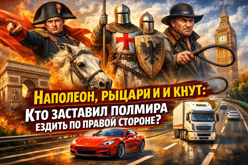 странах ездят по правой стороне дороги, а в других — по левой? 🧐 На первый взгляд, это может показаться случайностью или капризом законодателей. Но за каждой схемой движения — многовековые традиции, военные тактики и даже особенности конной упряжи. Давайте проследим корни этого феномена! ⚔️ ВЕРСИЯ 1: РЫЦАРИ И ДОРОГИ (Средневековье) Самая красивая версия уходит корнями в рыцарские времена. Большинство рыцарей были правшами и носили меч слева, чтобы удобнее было выхватывать его правой рукой. На узкой дороге они предпочитали держаться левой стороны, чтобы правая рука с мечом была обращена к потенциальному противнику — путнику, едущему навстречу. Так левостороннее движение стало интуитивно понятным для воинов. 🇺🇲 ВЕРСИЯ 2: ФУРГОНЫ И КНУТ (США, Франция) А в Америке и революционной Франции всё было иначе. Возчики фургонов, запряженных несколькими лошадьми, сидели слева, чтобы правой рукой удобно было работать кнутом, не задевая груз позади себя. При таком расположении, чтобы лучше ви