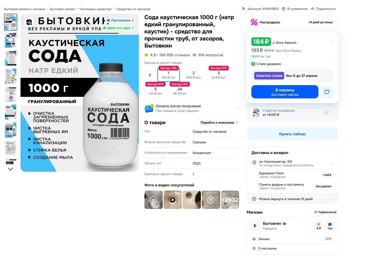 https://www.ozon.ru/product/soda-kausticheskaya-1000-g-natr-edkiy-granulirovannyy-kaustik-sredstvo-dlya-prochistki-trub-ot-616919831/ #wildberries #дешевоВб #валдберис #вайлдберис #вб #ozon #озон #ям #яндексмаркет #маркетплейс