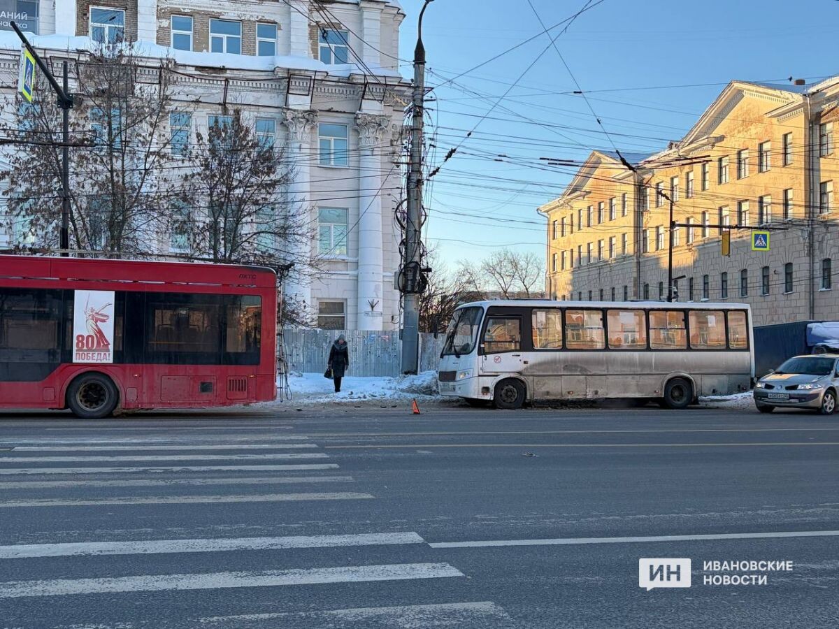 На проспекте Ленина в Иванове столкнулись автобус и троллейбус, последний сошел с путей