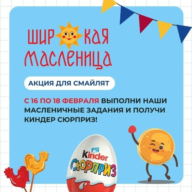 ? 😊 У нас в Вк новая интересная акция для Смайлят! 🎈 Первое задание: https://vk.ru/wall-17376388_12204 🎈 Второе задание: https://vk.ru/wall-17376388_12205 ‼️ Завтра не пропустите третье, последнее задание! 😉