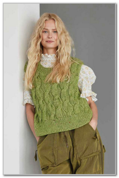 Перевод из журнала "Einfach Stricken", № 7, 2026 г. Модная безрукавка из двух нитей - хлопковой и мохеровой. По боковому краю вывязывается панель с краем шнуром.