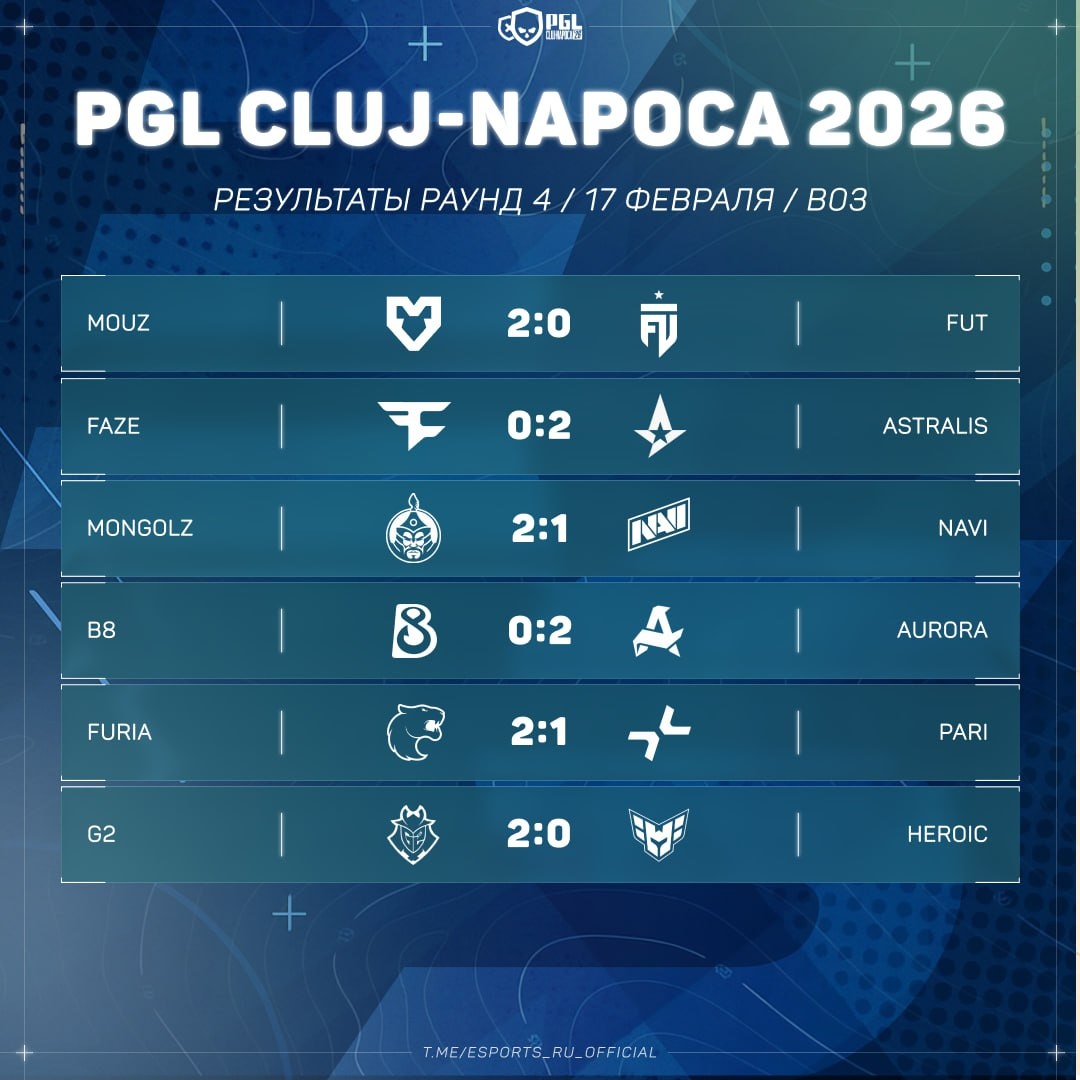 📌 Результаты четвертого раунда PGL Cluj-Napoca