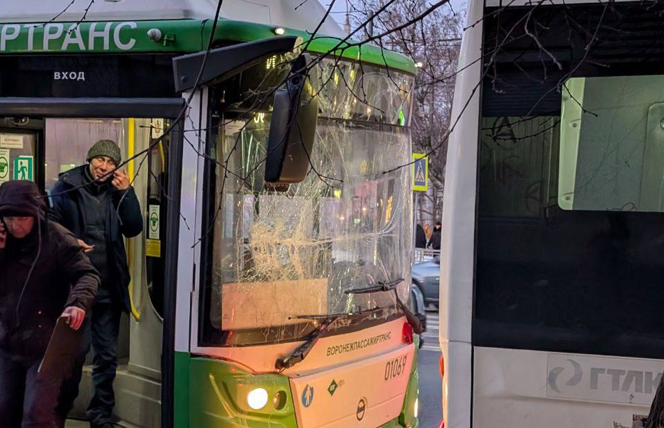 Два больших автобуса не поделили остановку «Площадь Застава» в центре Воронежа. Об этом в социальных сетях рассказали очевидцы во вторник, 17 февраля. На кадрах видно, что один автобус «догнал» другой и влетел в него сзади. В результате от столкновения всё лобовое стекло покрылось трещинами. По словам очевидцев, никто не пострадал. Уточняем информацию в пресс-службе управления МВД. Александр Хрупин