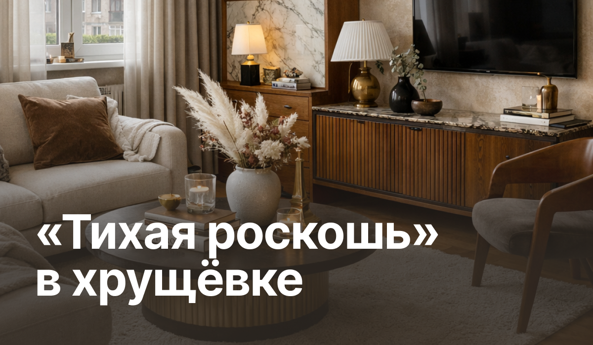 В интернете тихую роскошь показывают в квартирах с трёхметровыми потолками и панорамными окнами на парк. А у нас с вами — хрущёвка. Но интерьер делают не стены, а то, чем вы эти стены наполняете.