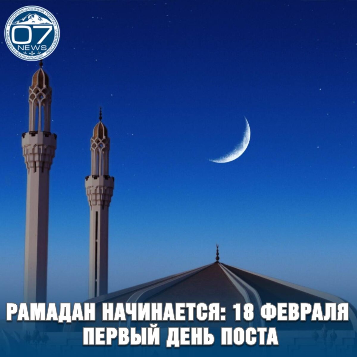 В Саудовской Аравии зафиксировано новолуние. В связи с этим завтра, 18 февраля 2026 года, — первый день месяца Рамадан. Уже сегодня вечером в мечетях состоится первый таравих-намаз — особая ночная молитва, совершаемая только в этот священный период. В течение месяца мусульмане будут соблюдать пост от рассвета до заката, уделять больше времени молитве, чтению Корана и благотворительности. Рамадан завершится праздником Ураза-байрам. Telegram: Новости КБР | Instagram: 07.news | Дзен: 07news