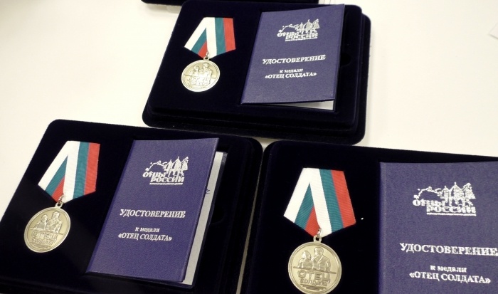 Медаль «Отец солдата» была учреждена 9 мая 2023 года по инициативе движения «Отцы России». Ее удостаиваются родители, чьи дети отличились в ходе боевых действий, а также участники спецоперации, ушедшие на фронт вместе с сыновьями. Аверс награды занимают силуэты отца и сына, на реверсе выбиты слова признательности людям, вырастившим достойных воинов.