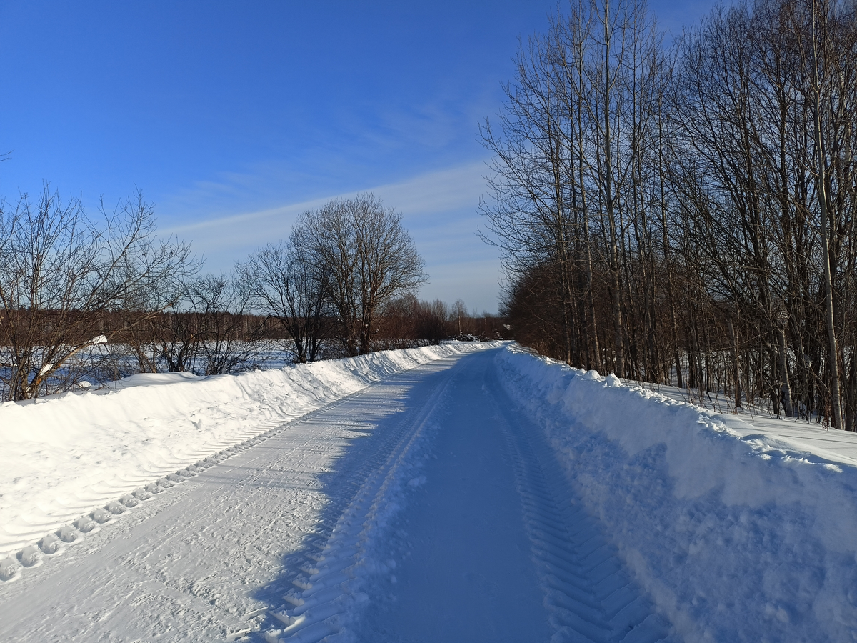 Маня бороздит снежные поля, а я гляжу, как тянутся по ним на закате синие тени придорожных ив - далеко-далеко, будто вёл художник тонкой кистью, огибая ложбинки перемётов. Эта синька, появляющаяся в феврале, всегда будоражит сердце - как же! Только-только всё белое было и вдруг новый цвет... Того гляди, скоро ёлки зазеленеют! А всему виной растянувшийся белый день, когда солнце успевает набрать высоту и сочится оттуда особым прозрачным светом...