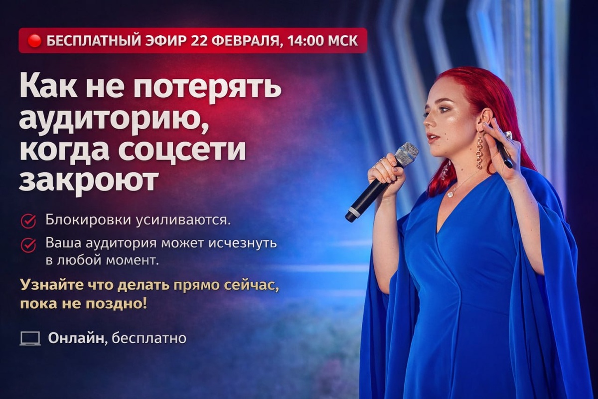 Пока вы читаете этот пост, где-то блокируется очередной VPN. Государство выделило миллиарды на то, чтобы закрыть доступ к соцсетям. За последние 3 месяца закрылись около 500 VPN-сервисов. И это только начало. Что это значит для вас? → Вся ваша аудитория может испариться за одну ночь → Годы наработок сгорят → Контакты подписчиков — потеряны И что делать? Пока есть доступ к соцсетям — нужно действовать СЕЙЧАС: ✔️ Собрать базу контактов, которая принадлежит ВАМ ✔️ Настроить систему, которая работает 24/7 без вас ✔️ Автоматизировать то, что съедает всё ваше время ✔️ Подготовить альтернативные каналы связи 22 февраля в 14:00 (МСК) — бесплатный эфир Я покажу: ✅ Как собрать базу аудитории, которая останется с вами навсегда ✅ Какие инструменты внедрить СРОЧНО (пока VPN работают) ✅ Как автоматизировать контент и освободить 70% времени ✅ Конкретные шаги — что делать в первую очередь. Это не теория "как когда-нибудь настроить воронки". Это конкретные инструменты, которые нужно внедрить ДО 1