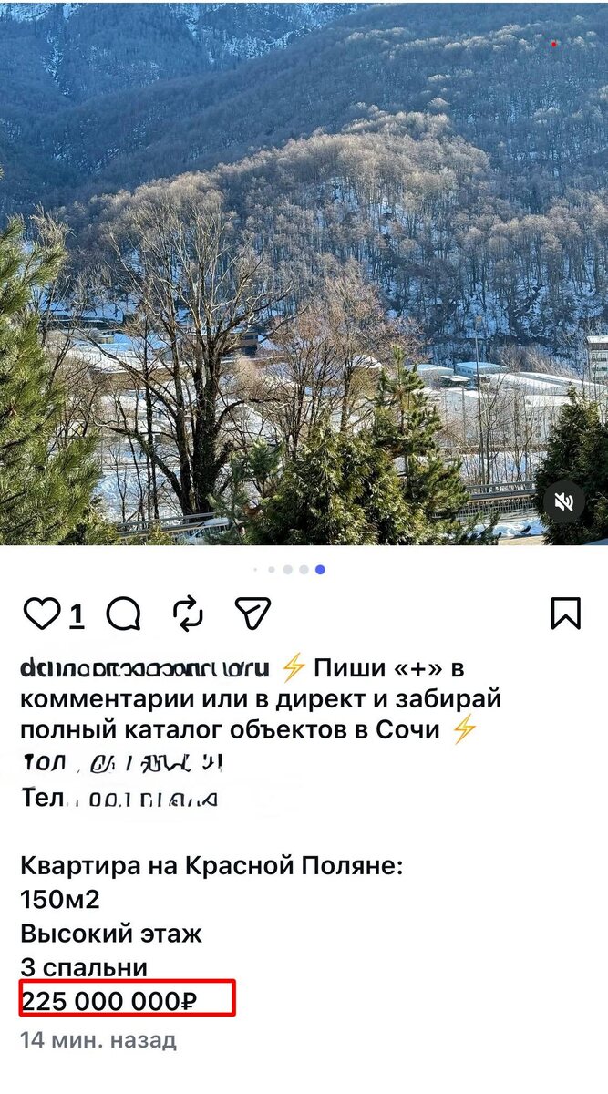Они опубликовали квартиру в Красной Поляне за 225 000 000₽ Но на самом деле, эта квартира стоит 95 миллионов. Она опубликована у меня в канале для моих Клиентов и подписчиков, стоимость квартиры 95 миллионов ➡️ https://t.me/Ulyana_Real_Estate/52340 Интересно к кому пойдут 130 миллионов комиссии 🤔 ✅Не ищите и не покупайте недвижимость в Сочи и Красной Поляне самостоятельно!!! Это лотерея и в ней вы скорей всего проиграете. ✅Обращайтесь только к проверенному и надежному агенту по недвижимости ➡️ @ulyana_sochi 🫶🏻
