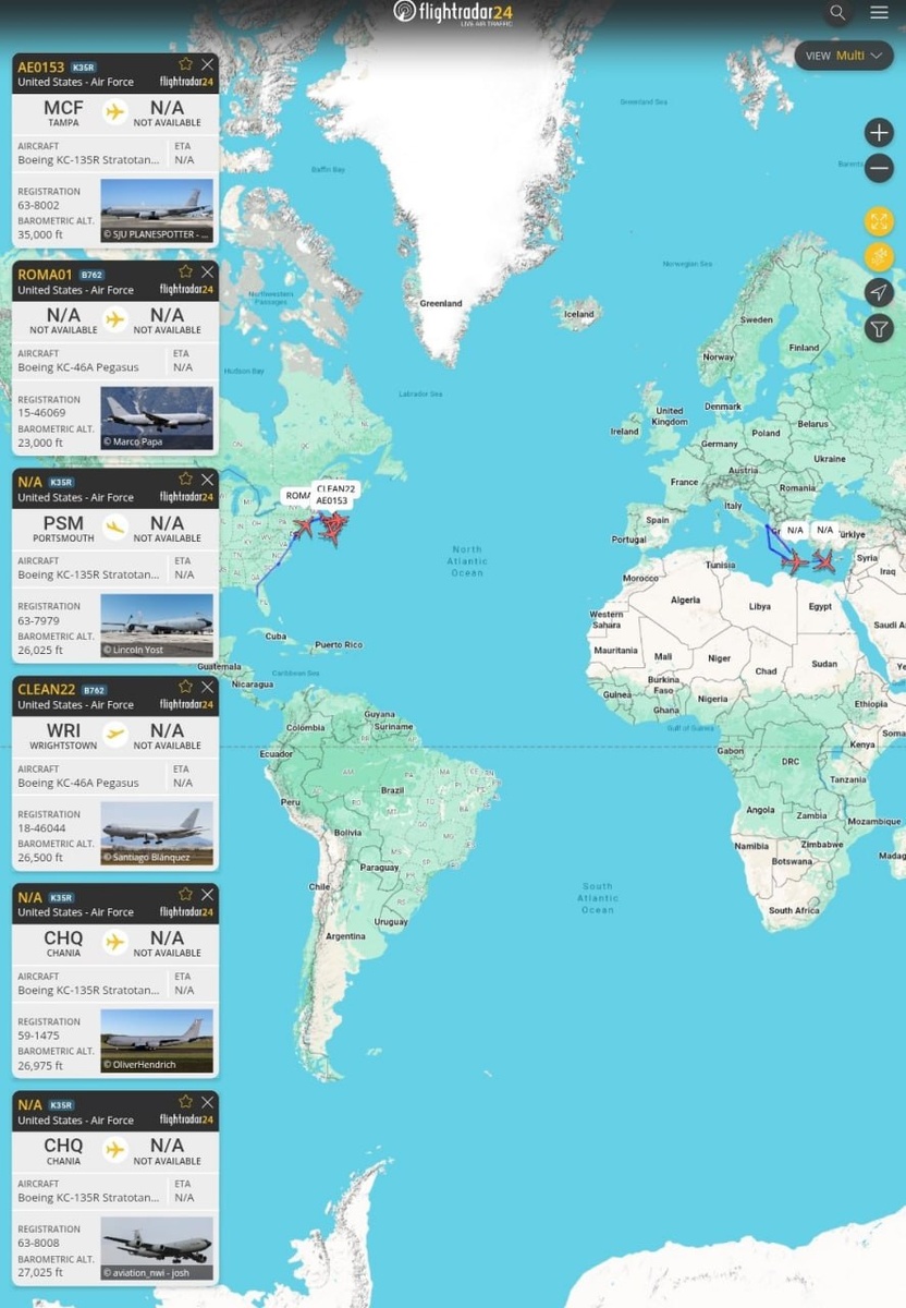 Как минимум 18 истребителей F-35A, 12 истребителей F-22 и 36 истребителей F-16 ВВС США перебрасываются на Ближний Восток в сопровождении множества самолетов заправщиков KC-135 Stratotanker и KC-46 Pegasus. Столь радикальное увеличения авиационной ударной группировки в регионе, одновременно с переброской дополнительной АУГ, оставляет все меньше шансов Ирану. Западные наблюдатели отмечают, что последний раз переброску истребителей F-22 на Ближний Восток наблюдали прямо перед операцией Midnight Hammer по нанесению ударов ВВС США по ядерным объектам Ирана в июне 2025 года. #Иран #США Военный Осведомитель