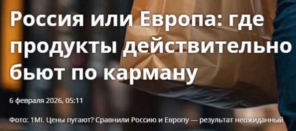 В последнее время потребительские товары повседневного спроса дорожают в России с такой скоростью, что цены по многим из них уже превысили европейские и даже американские, тогда как разница в доходах между странами получается трех- и более кратная. На это обратили внимание многие СМИ. Вот, например, сравнение цен в России и Германии на некоторые базовые продукты питания. Важно отметить, что Германия - это дорогая европейская страна, ведущая экономика еврозоны, в которой чистая медианная зарплата более чем в три раза превышает российскую (около 2500 евро против около 700 в России). Молочные продукты в этой лидирующей экономике Европы стоят примерно так же, как и в РФ, а например, сливочное масло - даже на 15-20% дешевле. При этом разница в цене большинства других базовых продуктов не более чем 1,5-кратная, тогда как разница в зарплатах - трехкратная. Аналитики точечно сравнили стоимость литра молока в Германии в сети магазинов Lidl, и оказалось, что там оно стоит в полтора раза дешевле,