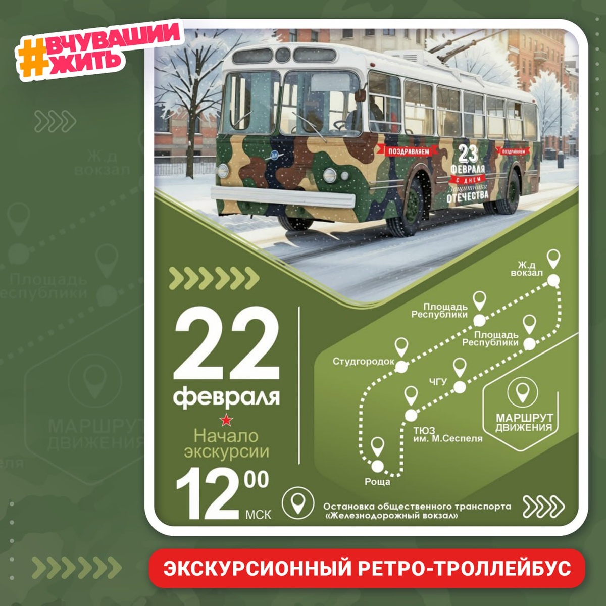 🚎 Забудьте о современных салонах с валидаторами и тихим гулом колёс. Здесь вы услышите, как натужно закрываются двери, почувствуете вибрацию старого мотора и посмотрите на город так, как это делали 60 лет назад. Чувашское транспортное управление предлагает окунуться в эту атмосферу на обзорной экскурсии по Чебоксарам на ретро-троллейбусе. На линию он впервые вышел в 1964 году. 📆 22 февраля, 12:00 - 14:00 📍 Отправление с остановки «Железнодорожный вокзал» Троллейбус не будет делать остановок во время экскурсии. Не забудьте записаться по телефону: 44-29-84. Подписаться / Предложить новость