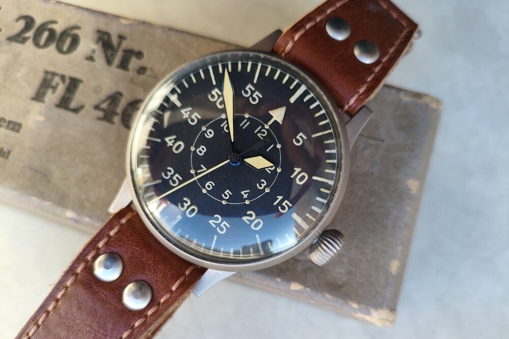Технические характеристики: Немного истории: Военная авиация Германии готовясь к войне нуждалась в наручных часах. В конце 30-х годов Beobachtungsuhren / B-Uhr или Flieger (часы воздушного наблюдателя) становятся неотъемлемой частью военного пилотного оборудования. Часы служили не только как прибор для определения точного времени, но и как средство навигации в дополнение к приборам, расположенным в кабине самолете: компасу и альтиметру. Технические характеристики этих часов были определены едиными требованиям Рейхсминистерства авиации, было очень важно, чтобы механические часы были высокой точности: Маркировка часов FL 23883 означала, "FL" означает Fliegnummer , т.е. принадлежность к авиационному снаряжению; "23" обозначение навигационного прибора; "883" означает, что часы тестированы Немецким исследовательским институтом авиации (Deutsche Versuchsanstalt für Luftfahrt). Каждые часы должен был быть проверены на соответствие обязательным требованиям, что подтверждалось соответствующим