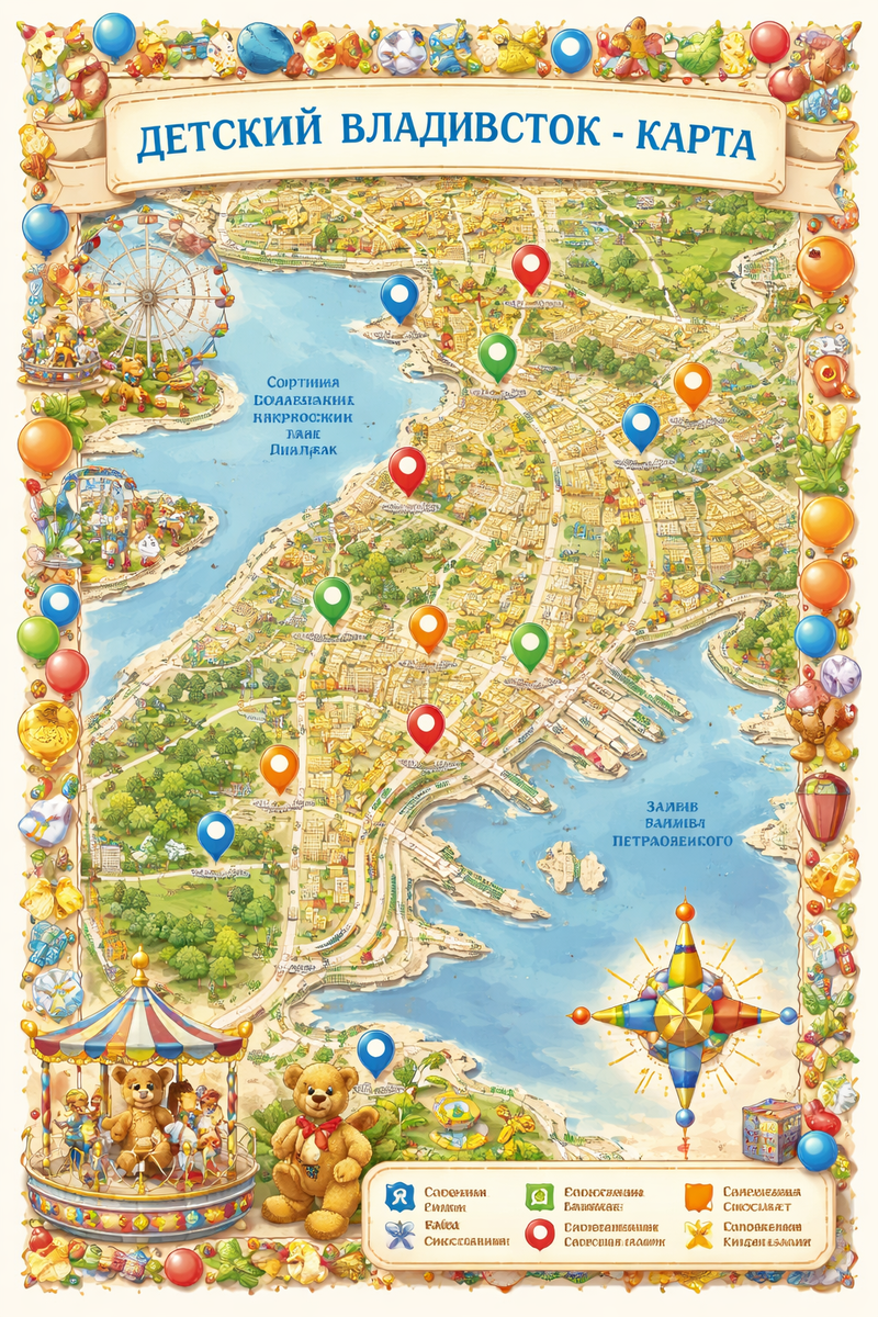 Во Владивостоке много мест для детей: аквариумы (рыба, осьминоги, медузы), парки аттракционов (карусели, горки, батуты), музеи (интерактивные, про космос, природу), бассейны, кинотеатры, детские кафе. Цены доступные (100–500 р. вход, зависит от места). Летом открыто всё (парки, пляжи), зимой развлекаются в помещении (музеи, батуты, бассейны). Я разобрал топовые детские места Владивостока — что интересно, цены, возраст, как туда добраться.