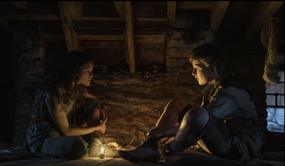 Как легко догадаться с девчушкой этой, дело хорошим не кончится. Они хотели купить два места на корабле «до Вольных городов» (в какой именно не сказали, здесь фантазия уже иссякла), но двух монет не хватило. Билет стоил всего две монеты? Но Раф и Дунка в каком-то сарае со свиньями (это отсылка к оригиналу, наверное - «я бегал за свиньями») ловт однорукий бандит и его подручный, отбирает деньги, а Раф еще и ссильничать хочет. А, нет, так просто намекал. Но, увы, Раф ничему эта суровая жизнь почему-то не учит - вот стырила она у однорукого бурдюк с элем, тот ее спалил. Теперь уходя, она тырит у него кинжал, желая, никак компенсировать отобранное у них с Дунком. А паршивец убивает девчонку.