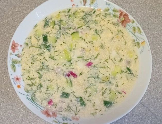 Ингредиенты: - огурцы 1,5 шт длинные; - редиска крупная 5 шт; - Картофель не крупный 4 шт; - лук зелёный по вкусу; - зелень укроп и петрушка по вкусу; - горчица по вкусу; - соль по вкусу; - минеральная вода (или квас); - постный майонез по вкусу. Приготовление: Укроп и зеленый лук мелко нарезать и перетереть (лучше руками) с солью. Мелким кубиком нарезать огурцы, очищенный вареный картофель и редис. Заправить майонезом и горчицей по вкусу. Залить минералкой. Тщательно перемешать. Окрошка готова.
