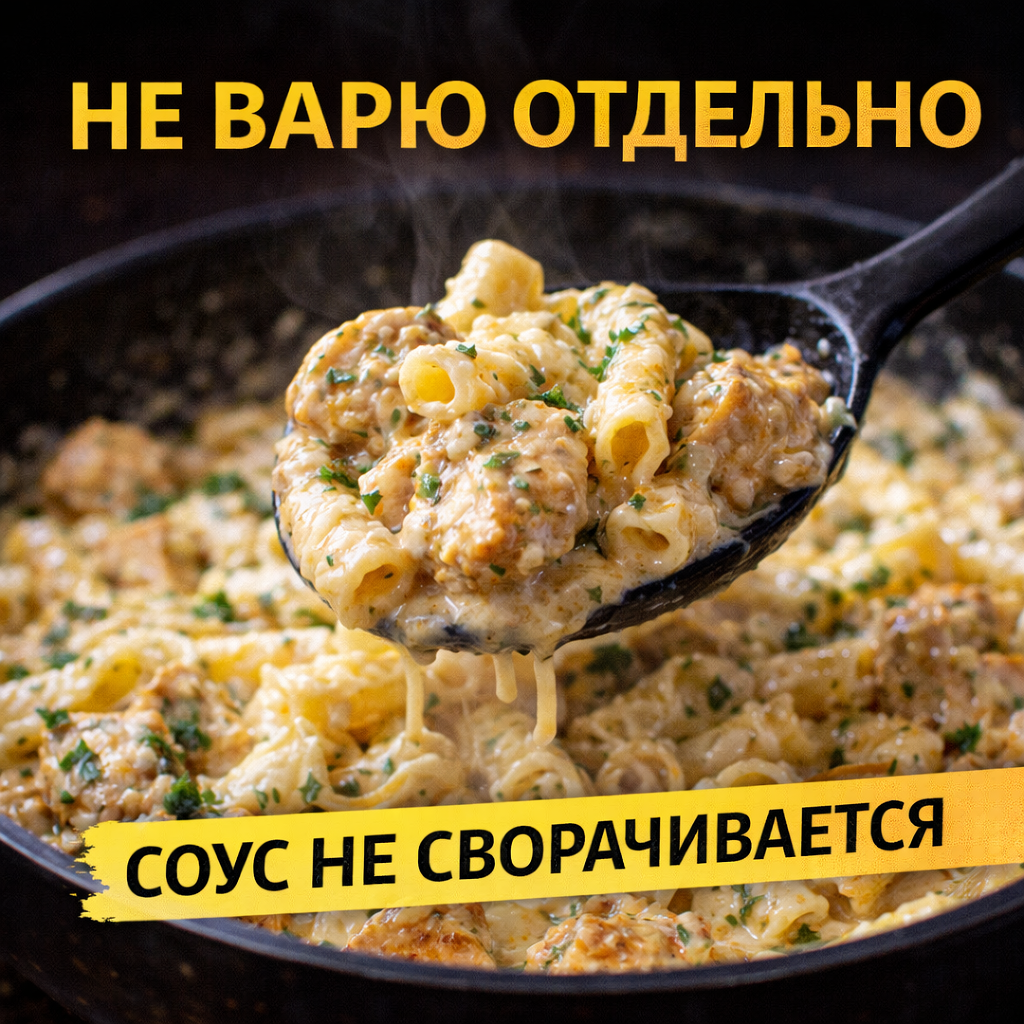 Потом всё смешивала. И соус часто получался странный — то жидкий, то комками. Пока не попробовала готовить по-другому. Теперь делаю только так. Большинство делает 3 вещи: Из-за этого соус либо сворачивается, либо становится водянистым. Готово. Соус обволакивает макароны.