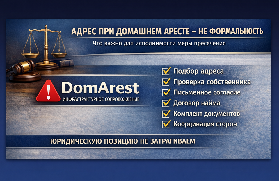 В практике по уголовным делам вопрос избрания меры пресечения в виде домашнего ареста нередко рассматривается как исключительно процессуальный. Адрес как элемент доказательной конструкции Суд оценивает не только аргументацию защиты, но и реальную исполнимость меры пресечения. Возникают вопросы: — подтверждена ли возможность проживания по конкретному адресу; — действительно ли собственник дал согласие; — корректно ли оформлены документы; — нет ли противоречий в правовом статусе помещения. Адрес — это не формальность. Это часть фактической основы решения. Типовые риски при подготовке адреса На практике чаще всего возникают следующие ситуации: — собственник отказывается в последний момент; — письменное согласие оформлено формально и не отражает реальную волю собственника; — в согласии или договоре неверно указаны данные о собственниках (ФИО, доли, правоустанавливающие документы); — не учтено наличие нескольких собственников; — пакет документов предоставлен не полностью; — отсутствуют под