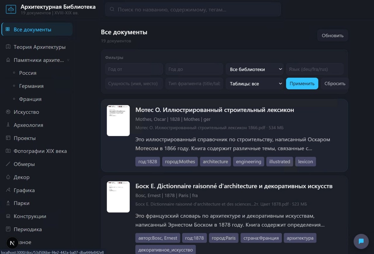 Цифровая Библиотека Реставратора is here ☀️ Создал систему, которая кроме очевидных вещей, типа распознавания текста на разных языках, включает вот такие полезности: ▫️Распознавание готических шрифтов ▫️Чтение рукописного текста ▫️Перевод с английского, немецкого, французского, русского дореформенного ▫️Формирование тэгов по смыслу книги ▫️Создание краткого описания по смыслу всего текста, не по названию файла или названию книги, не из описания с первой страницы, это анализ всего документа ▫️Режим чтения - скан страницы+перевод. Это необходимо, т.к. нельзя полагаться на перевод, он автоматический машинный. Позволит сравнить с текстом, если сможете прочитать ▫️Векторная база данных, которая работает быстрее стандартных за счёт правильного структурирования, а это возможно благодаря правильным тэгам ▫️Нейропоиск с цитированием. Этот поиск выдаст информацию подтверждённую содержимым книги, и даст ссылку на первоисточник. На всё ушла неделя, параллельно с другой работой. Дольше запрягали