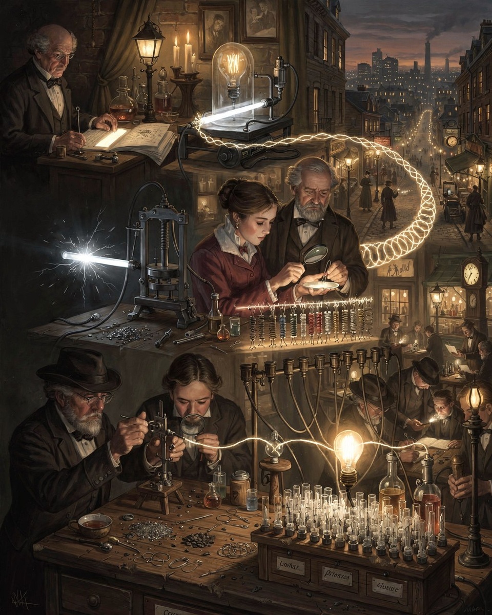 📜 Когда появилось? Знакомая нам электрическая лампа накаливания появилась в 1879 году в США. Именно тогда Томас Эдисон представил работоспособную модель с угольной нитью, способную гореть десятки часов. Однако путь к этому открытию занял почти столетие. 💡 С чего всё началось? Ещё в 1802 году британский химик Гэмфри Дэви создал первый электрический свет, пропуская ток через платиновую полоску. В последующие десятилетия учёные разных стран экспериментировали с материалами и вакуумом: • Уоррен де ла Рю (1840) - платиновая спираль в вакууме, • Джозеф Уилсон Суон (1860) - углеродная нить, • Александр Лодыгин (1872) - угольный стержень в стеклянной колбе. Эдисон не изобрёл лампу с нуля - он усовершенствовал существующие разработки, создав практичную конструкцию и систему электроснабжения. Его команда протестировала более 6 000 материалов. ✨ Лампочка стала символом прогресса: она изменила ритм жизни, продлила рабочий день и преобразила города. Это создал человек!