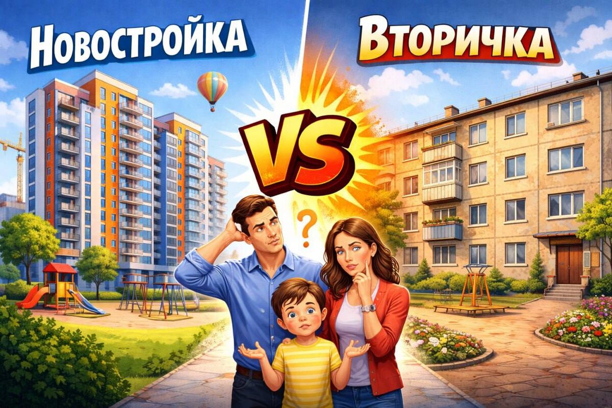 Кто побеждает? Команда PROCREDITY работает на рынке недвижимости с 2018 года. За это время мы научились работать со вторичкой, новостройкой, сложными расселениями коммунальных квартир, покупками ипотечных ставок в новостройках и даже вторичке. Мы научились помогать покупать участки и строить дома. И конечно, пережили с рынком недвижимости несколько турбулентных периодов, каждый из которых совершенно не похожий на предыдущий… Итак, что мы сегодня видим. У нас в работе 4 семейные пары с абсолютно разными запросами. 🔑 Ключевой момент - все эти семейные пары НЕ подходят под семейную ипотеку. 1️⃣ Двум семейным парам нужно купить новостройку от застройщика в определенных локациях. Задача – сразу жить или переехать в 2026г. 2️⃣Одним мы ищем вторичку, 3️⃣ Четвёртым делаем кредит под залог недвижимости с целью выкупа доли до целого объекта в другом объекте недвижимости. Сейчас кратко покажем, что в итоге происходит (см.на картинку) Базовая новостройка, даже с субсидированием (по сути покуп