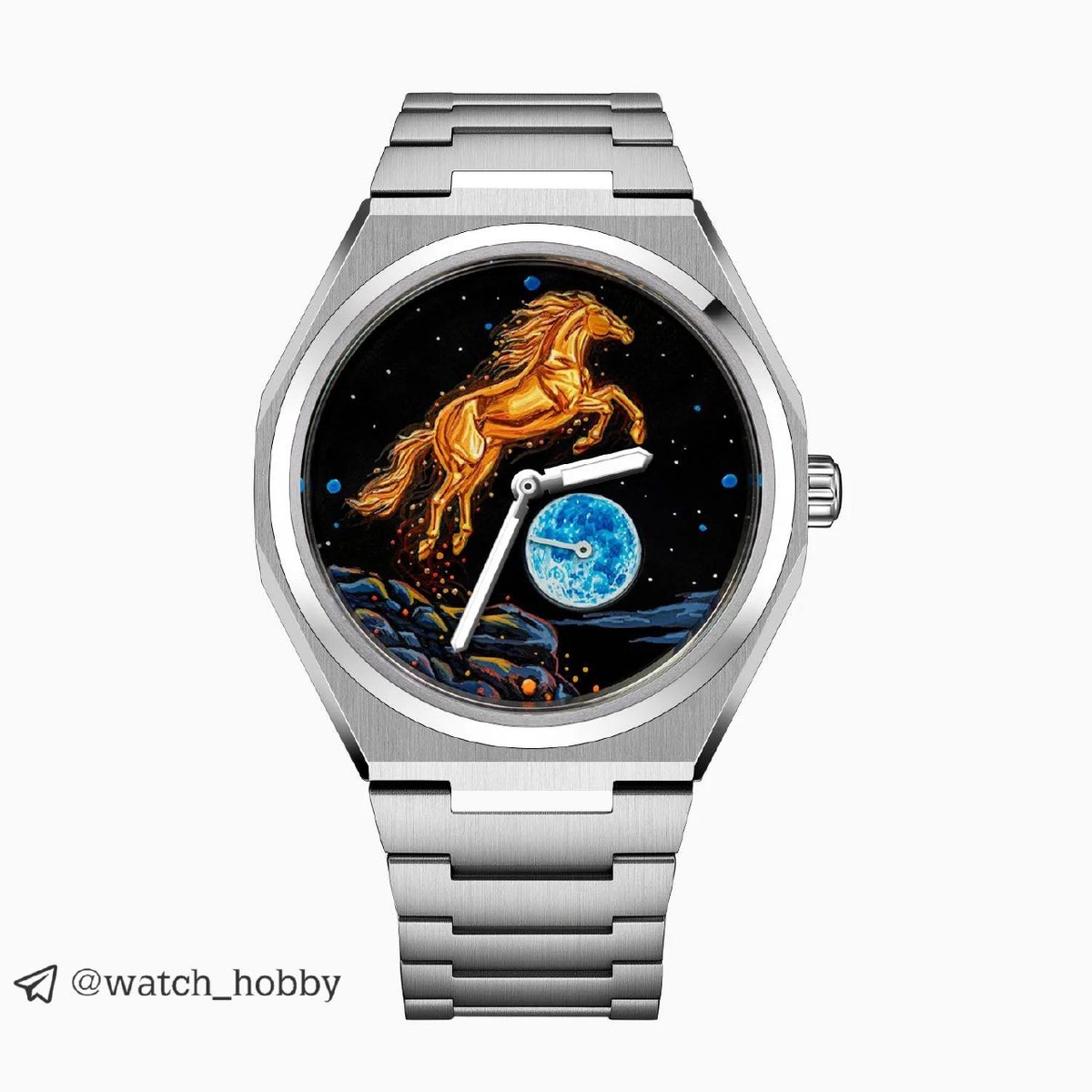 Кастом от IFL Watches. Модель получила название Golden Stallion, эксклюзивный циферблат и очень ограниченный тираж. Что с характеристиками: - Корпус из титана - Браслет из титана - Эксклюзивный циферблат - Размер корпуса: 40.5 мм - От ушка до ушка: 50 мм - Высота корпуса: 11 мм - Сатиновая и зеркальная полировка - Сапфировое стекло - Водозащита 100 метров - Автоматический калибр Citizen 8213 с запасом хода в 42 часа Каждый циферблат расписывается вручную, на нем изображен золотой скакун на фоне звездного неба и невероятно сияющей Луны, которая вписана в счетчик секунд. Стрелки, 4 индекса и Луна - люминесцентные. В темноте циферблат заиграет новыми красками. А технически это Citizen Zenshin. Такой, как он есть - титановый, прочный и легкий. Часы выпущены к китайскому Новому году, уверен, станут очень классным подарком. Лимит: 100 экземпляров. Стоимость: 990 евро или 95.000 рублей 💰, ориентировочно. Подпишись и делись мнением!