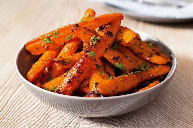 1. Запечённая морковь с мёдом и чесноком.