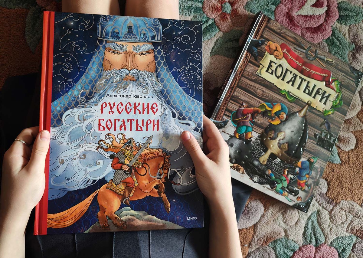Добрыня Никитич, Алеша Попович и, конечно, Илья Муромец. Они хорошо знакомым многим благодаря мультфильмам франшизы «Три богатыря». Добавим Святогора, Мякулу Селяниновича и Никиту Кожемяку. Кто еще? Мои познания в этой теме оказались крайне маленькими, несмотря на большое количество книг про мифы, былины и сказки. Поэтому я не смогла пропустить новую книгу «Русские богатыри» Александра Гаврилова, вышедшую в издательстве МИФ в серии «МИФ. Волшебный мир фольклора». Автор в книге рассказывает про 20 персонажей: 6 упомянутых выше плюс Дунай Иванович, Вольга Святославич, Сухман Дамантьевич, Иван Гостиный сын, Михайло Потык, Михайло Данилович, Чурило Плёнкович, Данило Ловчанин, Соловей Будимирович, Василий Буслаев, Садко, Евпатий Коловрат, Александр Пересвет и кентавр Полкан. Вот такая необычная компания. Не все они мудрые герои-защитники, например, Василий Буслаев — вандал, разбойник и убийца. Соловей Будимирович — молодой заморский купец, возможно, по одной из версии, перевоспитавшийся Сол