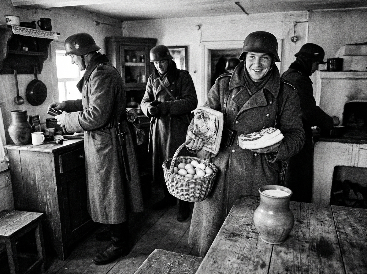 Яйца, молоко, живую птицу, свиней уводили не спрашивая. Кур резали прямо во дворе. Алкоголь и самогон, припрятанный в подполе, уходили мгновенно.