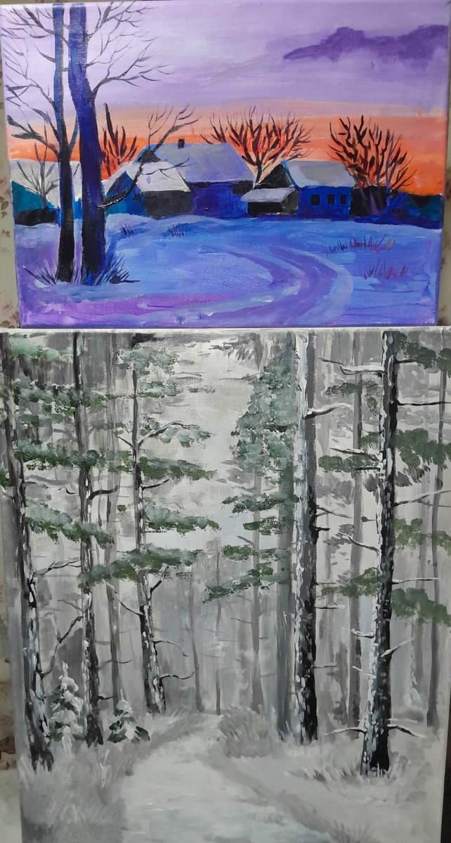 В прошлую среду девчонки привезли из художки свои работы на холстах, писали их к школьной выставке в Дмитровске.