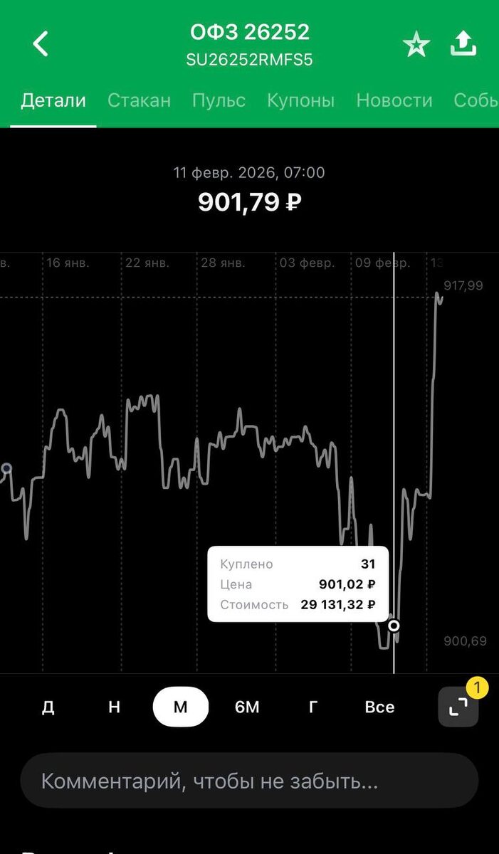 Покупки мы делаем на падениях у всех должен быть кэш для этого ( в фондах ликвидности). У меня и моих клиентов редко меньше 10% кэша в портфеле. Зачем? ➕Падения это возможности. ➕Паника рынков даёт нам дополнительную доходность. ➕Неэффективности рынков нужно использовать в свою пользу и я вам с этим помогаю по мере возможности в открытом канале. Когда хороший актив падает , задавайте себе вопрос «Когда если не сейчас покупать ?» когда всё выросло, когда у всех он уже есть ? НЕТ! На падениях!!! Смысл инвестиций купить подешевле, продать подороже . Возможностям нужно радоваться и всегда держать кэш на этот случай. Пример: Я не знала какой результат будет на заседании по ключевой ставке, склонялась к тому что её оставят такой же 16%. Но даже с учётом этого я видела доходность по ОФЗ 26252 на уровне 15,3% и думала вы чего там с ума посходили это же классная возможность усредниться (докупить этот выпуск) Посмотрите какая красивая точка закупа получилась на графике (рис1) Вывод: