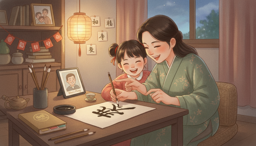 Иероглифы и устойчивые выражения такой повод дают естественно. Вы разбираете знак, связанный с гармонией, и разговор плавно уходит к тому, как каждый в семье понимает «не ссориться, а договариваться». Обсуждаете выражение про настойчивость — и вдруг переходите к опыту: когда вы сами в детстве бросали начатое и чего вам тогда не хватало.