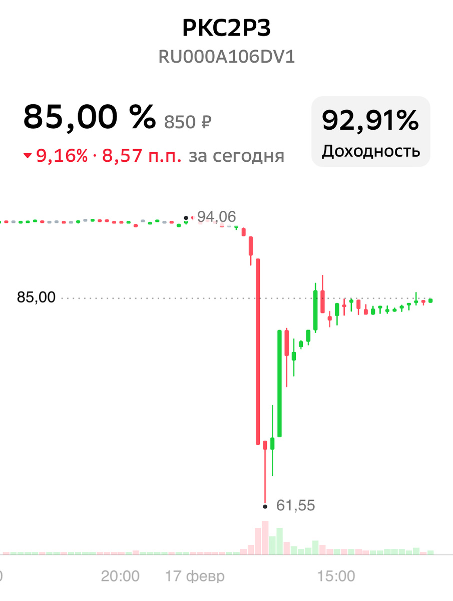 ? Что-то все неспокойно стало в сегменте ВДО. Пролистывая брокерский заметил падение в облигациях РКС… правда к вечеру они уже частично отросли. А на чем падение? #облигации