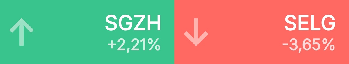 : Сегежа • 1,32 ₽ • 2,21% Юнипро • 1,64 ₽ • 1,93% ФосАгро • 6 455 ₽ • 1,81% Московский • 6,27 ₽ • 1,39% Группа Рус • 124 ₽ • 1,18% АФК Систем • 13,93 ₽ • 0,78% VK • 322 ₽ • 0,75% Эн+ • 482 ₽ • 0,57% Транснефть • 1 428 ₽ • 0,55% Роснефть • 390 ₽ • 0,46% 🔻 Топ-10 лидеров падения среди крупнейших акций: Селигдар • 53,92 ₽ • -3,65% ЮМГ • 856 ₽ • -2,89% Русал • 38,13 ₽ • -2,73% Яндекс • 4 750 ₽ • -2,55% Полюс • 2 415 ₽ • -2,18% ГК Самолет • 828 ₽ • -1,71% Фикс Прайс • 0,56 ₽ • -1,52% Новатэк • 1 158 ₽ • -1,40% Норильский • 154 ₽ • -1,37% ТГК-1 • 0,01 ₽ • -1,35%