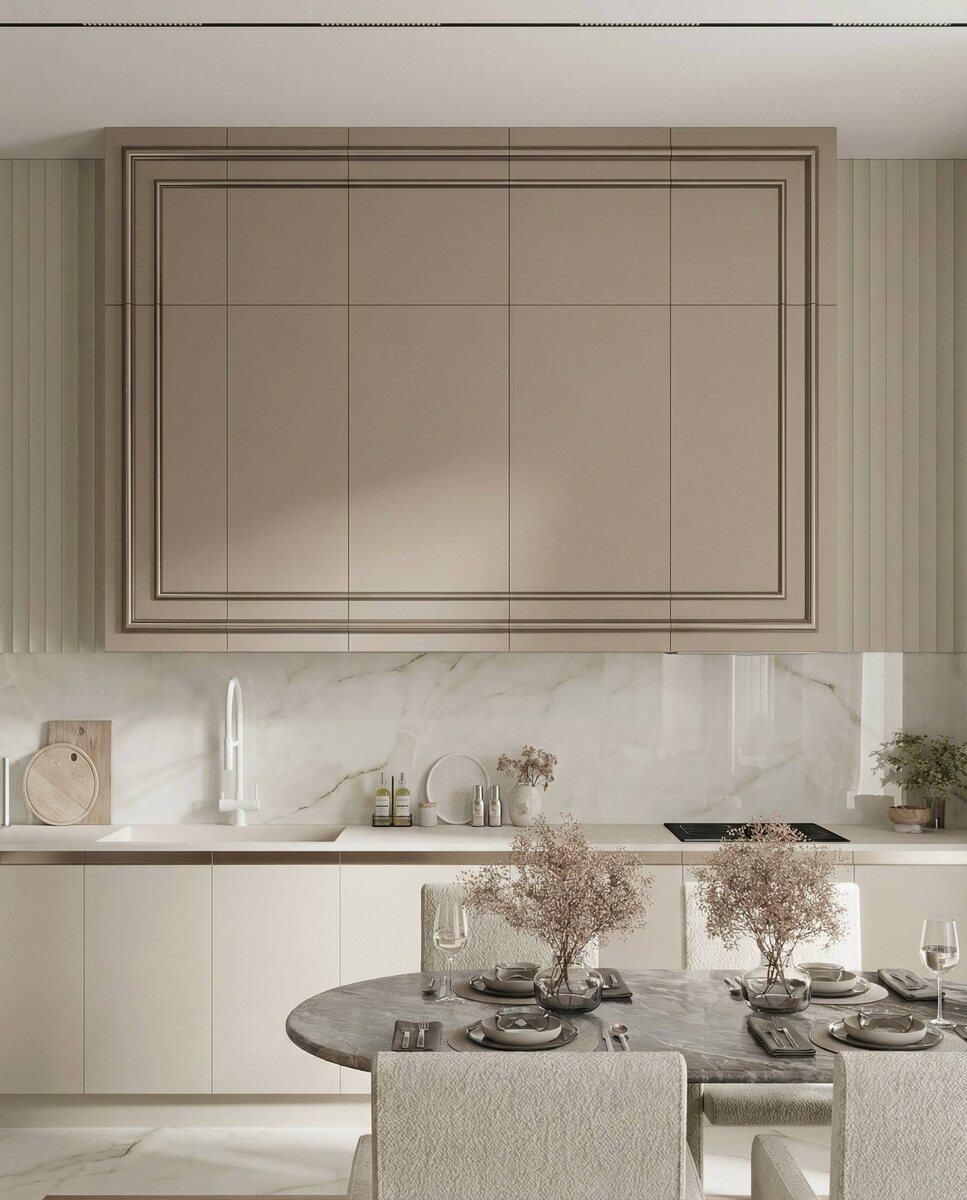 📷 Рамочный фасад формирует не только мебель он формирует пространство. Тонкий профиль собирает плоскости, выстраивает вертикали и задаёт ритм всему помещению. 📷 Колонны, нижние модули и витрины объединяются в единую композицию. Кухня воспринимается как архитектурная часть комнаты, а не как отдельный предмет. За счёт мягкой тени по периметру поверхности приобретают глубину, и интерьер выглядит цельным и продуманным. 📷 Мебель становится центральным элементом, вокруг которого выстраивается всё пространство спокойно, пропорционально и без лишних акцентов. ✉️ Если планируете кухню или систему хранения, можно прислать план или фото помещения. Подскажем решение, которое будет работать именно в вашем интерьере. _______________ Получить онлайн консультацию Рассчитать стоимость проекта Записаться в шоурум