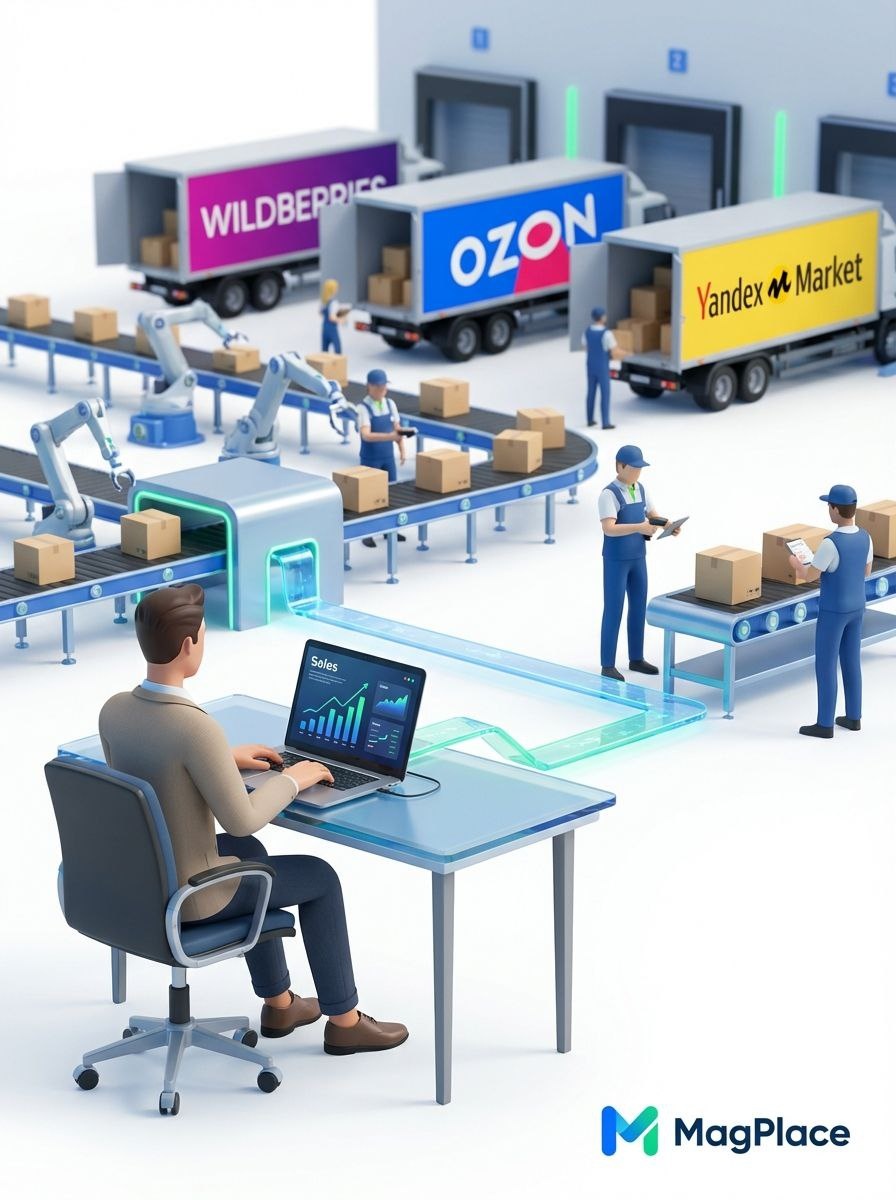 Новость недели: Яндекс Маркет официально запускает сервис фулфилмента для продавцов. Теперь можно делегировать ЯМ: • хранение товара • сборку и упаковку • доставку в 15 000+ ПВЗ или до двери • возвраты и обработку брака • отгрузку на склады других маркетплейсов 💪 По сути, ЯМ сейчас усиливает инфраструктуру. И одновременно забирает под себя операционку продавцов. --- А операционка — это главная точка выгорания в товарном бизнесе. Склад. Пересорты. Возвраты. Брак. Постоянный контроль отгрузок. Знакомо? Чем дольше вы в теме, тем лучше понимаете: чем меньше вы трогаете товар руками, тем больше зарабатываете головой. --- ⭐️ Мы в MagPlace это поняли с самого старта. Поэтому сразу запустили для партнёров собственный фулфилмент — чтобы они не занимались упаковкой, хранением и отправками, а концентрировались на главном: ассортименте, тестах и результатах. И для нас это не просто «допфункция», а базовая часть экосистемы: ✅ 4 склада — Москва, Уфа, Краснодар, Самара ✅ 1000+ отправок в