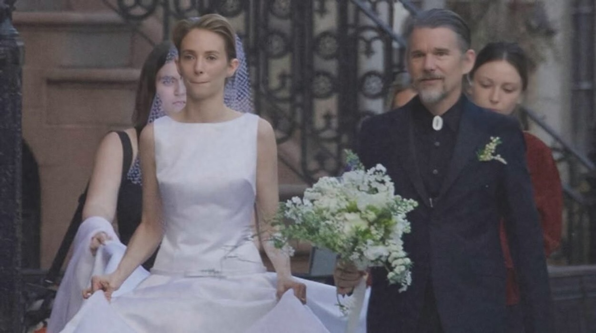 14 февраля стало для 25-летней актрисы Майи Хоук официальной датой одного из самых романтичных событий — её свадьбы. Церемония прошла в нью-йоркской церкви Святого Георгия. Папарацци запечатлели момент прибытия молодожёнов к храму в сопровождении близких и друзей. Избранником Майи стал музыкант Кристиан Ли Хатсон. Их отношения начались около 2022 года, перейдя от дружбы к совместной работе над альбомом Chaos Angel. Летом 2024 года пара подтвердила свой роман в соцсетях, опубликовав совместные фотографии с личными подписями. Незадолго до этого Кристиан в интервью назвал Майю своей невестой, а позже на руке актрисы заметили кольцо с крупным бриллиантом. Свадебный образ Майи оказался подчёркнуто лаконичным: платье с длинным шлейфом, выполненное из белого шёлка и фатина, отличалось чётким архитектурным силуэтом без лишних деталей. Поверх платья актриса надела мягкий плащ с перьями на рукавах и капюшоне. Романтичный пучок и нюдовый макияж дополнили её нежный бьюти-образ. На торжестве присут
