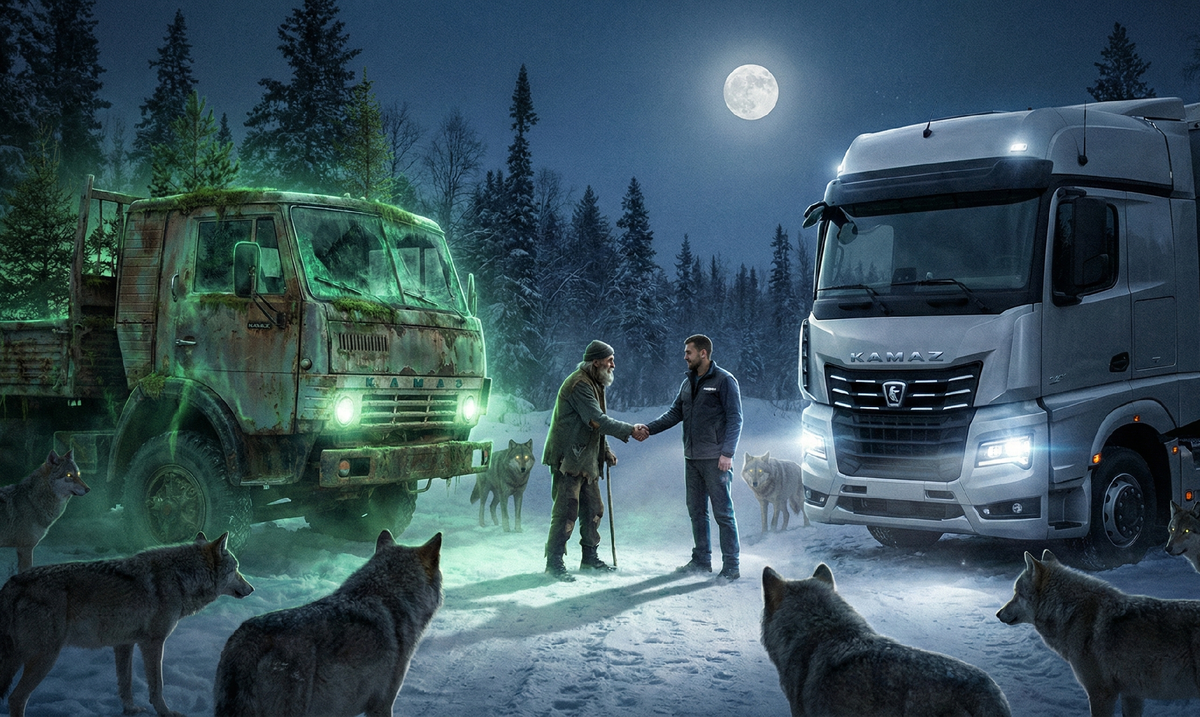 Снег скрипел под огромными колесами «Зверя», и этот звук, монотонный и успокаивающий, был для Глеба лучшей музыкой за последние тридцать лет. Кабина его КАМАЗа была маленьким островом тепла в бескрайнем океане зимы. Здесь пахло соляркой, крепким черным чаем с чабрецом и старой кожей — запах, который въедается в обивку годами и становится частью души водителя. Глеб погладил оплетку руля, словно здороваясь с верным другом.