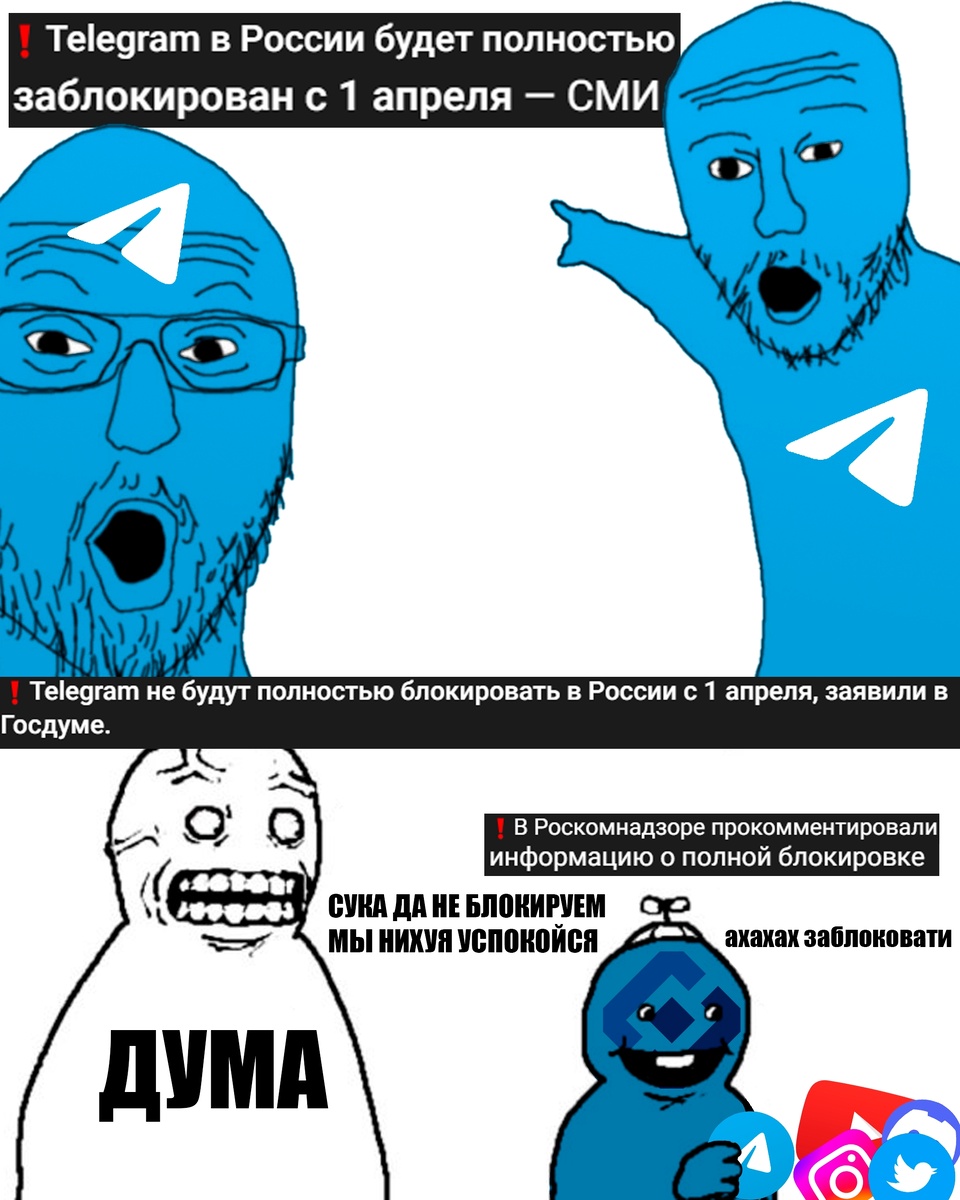 Напомним: блокировка ТГ запланирована на 1 апреля и будет действовать по всей России, аналогично Instagram* и Facebook*