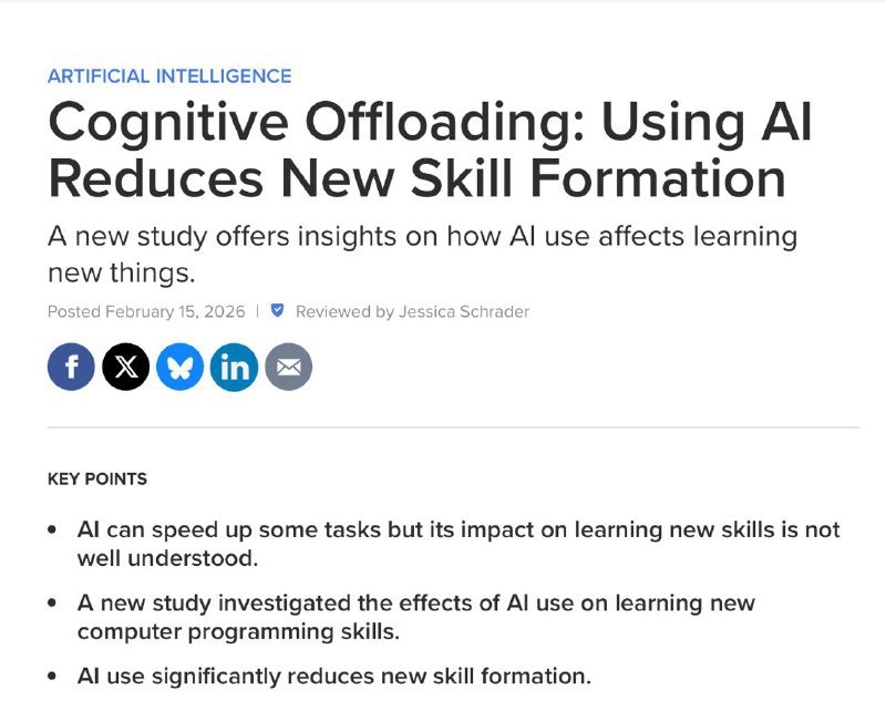 Учёные выяснили: ИИ может ТОРМОЗИТЬ прокачку навыков во время обучения