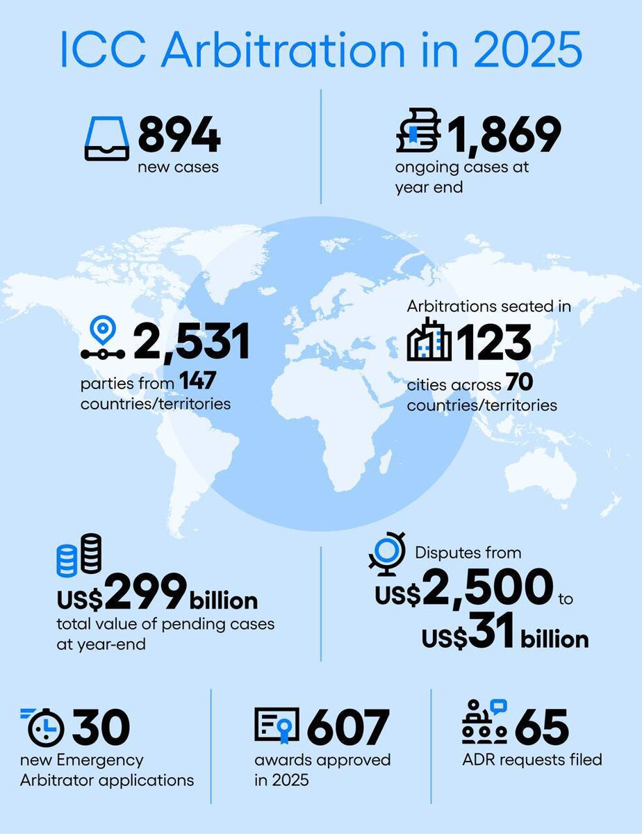 📊 ICC опубликовала предварительную статистику по разрешению споров за 2025 год