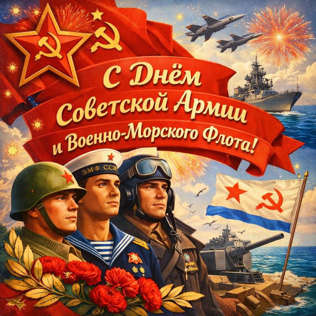 С Днем Советской Армии и Военно-Морского Флота! Этот праздник для меня — не просто дата в календаре, а живая нить, связывающая нас с великой историей, с эпохой, когда понятия "честь", "долг" и "Родина" были не пустыми словами. Я поздравляю всех, кто носил гордую форму защитника страны, кто стоял на страже ее рубежей в годы мира и кто с оружием в руках отстоял ее свободу в лихую годину. Ваша сила духа, верность присяге и беззаветная любовь к Отчизне — это пример для всех нас. Пусть память о ваших подвигах живет вечно, а небо над головой всегда будет мирным и ясным. Низкий вам поклон и самые искренние пожелания здоровья, счастья и долгих лет жизни.