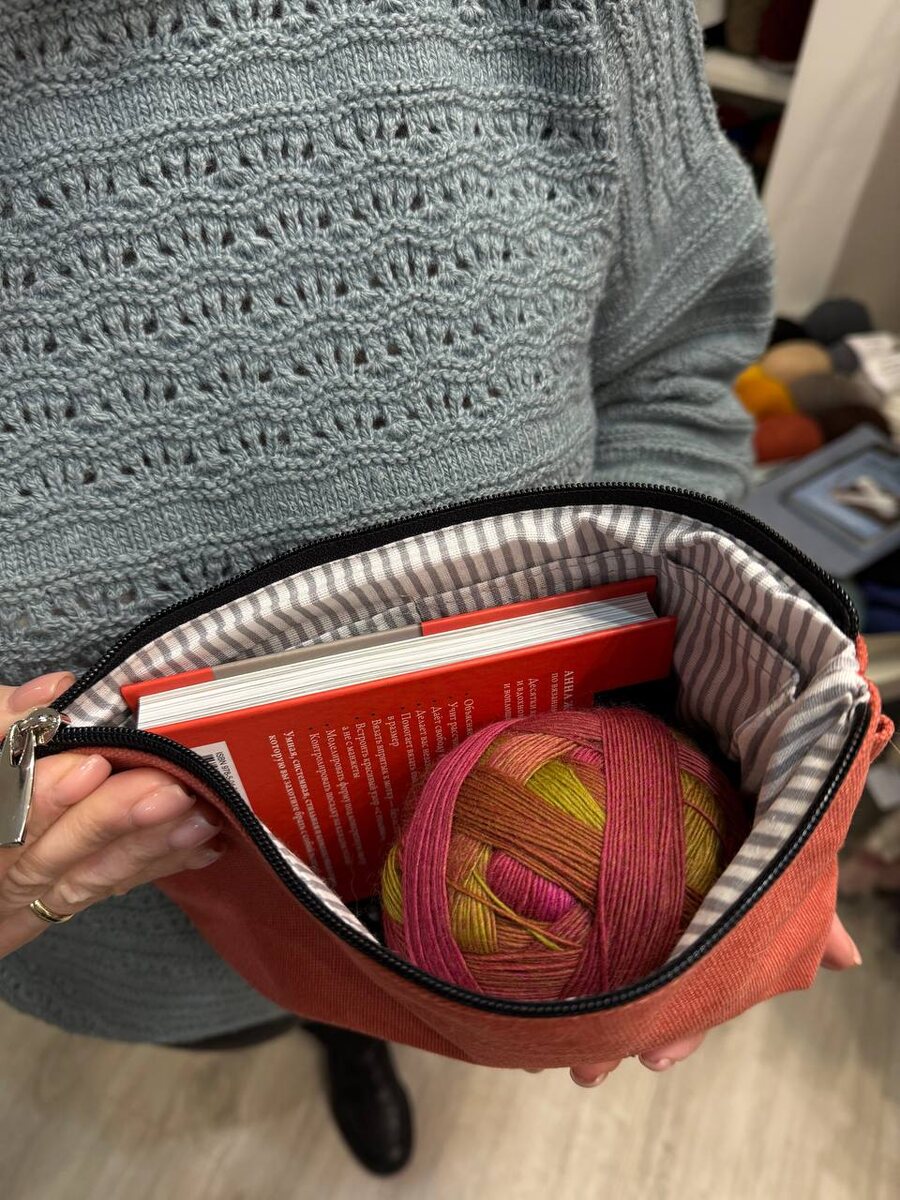 😉 Света уже собрала две косметички в подарок. Внутри поместились: 🌟Книги Анны Журавлевой «Вяжем носки снизу вверх» и «Вяжем перчатки» 🌟Моточки Schoppel Zauberball 🌟И даже осталось место для рулетки, ножниц и спиц, для них внутри есть два удобных кармашка. Сама косметичка небольшая, не смотря на вместительность, всего 25х15х7 сантиметров. Она сделана из прочного канваса и представлена в 12 цветах: от ярко-синего до угольно-черного. Если вам хочется подарить несколько мотков или человек чаще вяжет плечевые изделия, то есть вариант: «Сумочка-косметичка 2 мотка и спицы»❤ А как вам идея такого подарка? Что бы вы добавили к этому набору? В этом посте есть большое видео, которое не загрузилось в Дзен. Откройте оригинал поста в телеграме, чтобы его посмотреть