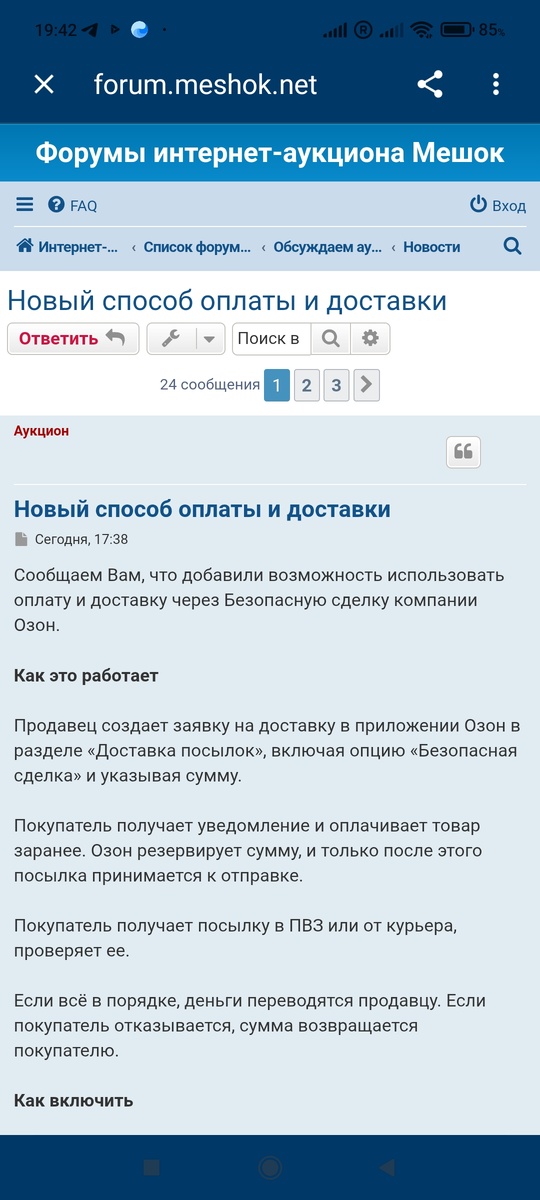 Ну вот, дожили... Сегодня получаю письмо, как продавец на мешке, про новый способ оплаты и доставки... По ходу сайт мешок для коллекционеров начал мстить жадному АВИТО за тыринг с мешка системы аукционов))) И понеслось... оно по трубам... Есть конечно и плюсы и минусы всего этого... Присоединяюсь к этой мысли. Те, кто коллекционируют, пойдут на Мешок в надежде что-то купить через авито мешкодоставку посредством ОЗОН... Однако есть засада, не все готовы ставить значок доставки ОЗОН - ибо - прием денег на карту ОЗОН, в мобильнике должно быть приложение озон... отнеси открытым.... вопрос ущерба/утраты/потери посылки не продуман... куча развлекающихся, как на АВИТО людей, не приходящих за посылкой... отзывы о доставке хрупкого на ОЗОН поганые-препоганые.... Для меня лично это плюс - 1. Можно увеличить продажи. 2. Логистика в мой и из моего региона - слишком мало ТК, в основном дорогая почта... 3. Пункт рядом через дорогу). 4. Меньше продадут овна на палке с неуказанными специально дефек