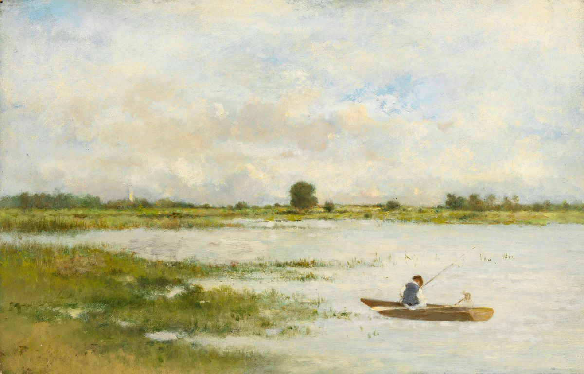 В XIX веке австрийские художники открыли для себя Великую Венгерскую равнину как сюжет для своих картин: для них самобытный венгерский пейзаж представлял собой "экзотический Восток". С развитием железных дорог город Сольнок и окрестности стали легкодоступны для художников, которые отходили от ограничений академической живописи и обращались к природе. Влияние французской пейзажной живописи и Барбизонской школы сделало свет и атмосферу Великой равнины ещё более привлекательными. Август фон Петтенкофен (1822-1889), неоднократно посещавший Париж и Барбизон, был одним из первых художников, осознавших потенциал Венгерской равнины. Созданные им там картины можно даже рассматривать как этнографические зарисовки. Работа, известная как «У Тисы» или «Речной пейзаж», играет на контрасте между изолированной фигурой рыбака и Венгерской равниной, простирающейся в бесконечность вокруг него. Широкий горизонт над рекой прерывается одиноким деревом. Особенность изображенного на этой картине заболоч